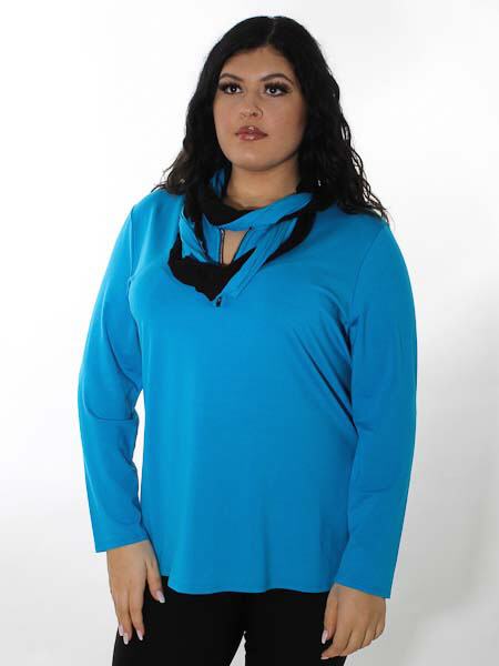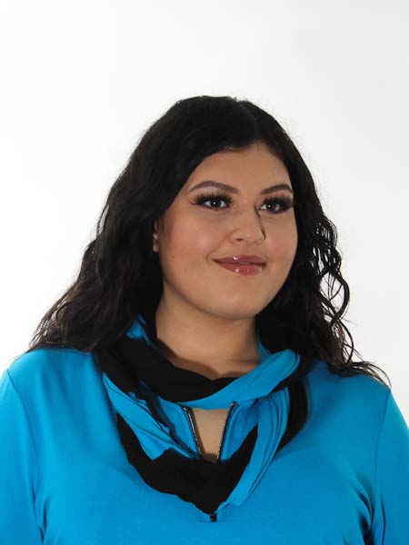 ist der Loop von Doris Streich, aus schwarz/türkisfarbenem Jersey. Sie können ihn doppelt oder einfach wie eine lange Kette tragen. 1/2 Länge ca. 95 cm.