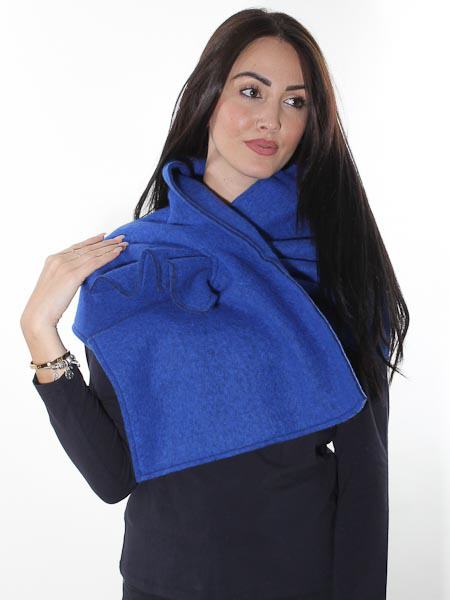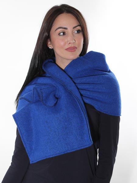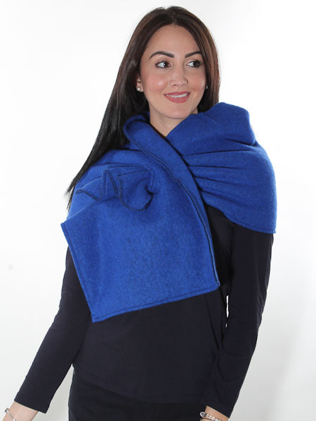 ist der Stoff dieses breiten Schals von Boheme, wir haben ihn in köngisblau vorrätig. Die Stoffkanten liegen außen, sind nur geschnitten. Er hat einen breiten Schlitz, durch den das Ende des Schals gezogen werden kann. Länge ca. 124 cm, Breite ca. 38 cm.