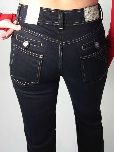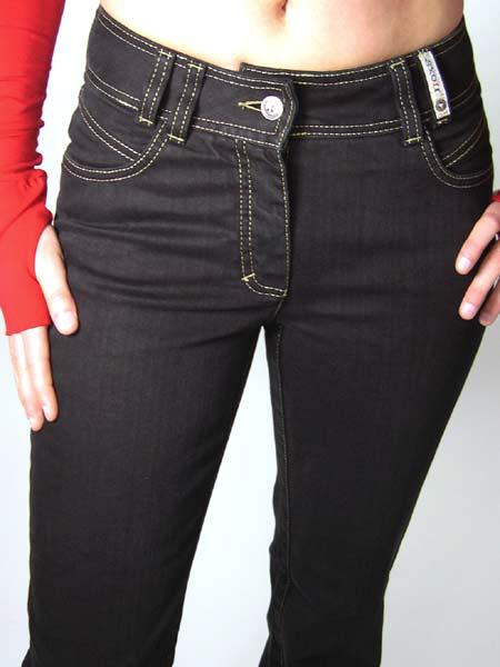 Modische Jeans von JJOXS, mit leicht ausgestelltem Bein, leicht low cut, in der Trendfarbe schwarz, mit raffinierten Taschen am Po. Clean, ohne Waschung.