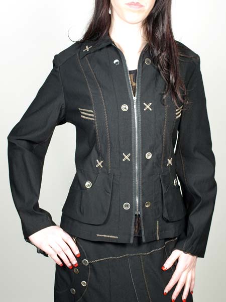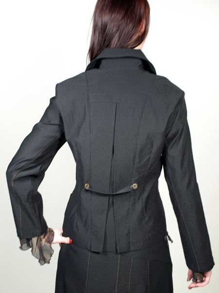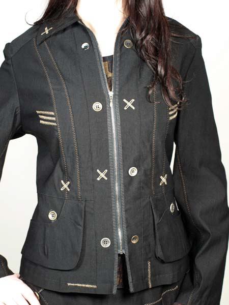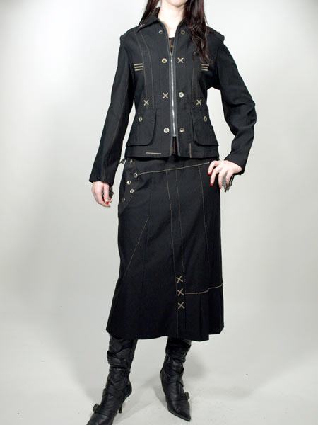 gearbeitet ist diese schwarze Rock von Pause Café aus Frankreich, zu jeder Jahreszeit tragbar, mit vielen Nähten, die mit Zickzackstichen betont werden, mit dekorativen Beuteltaschen und vielen verschiedenen Knöpfen. Länge der Jacke ca. 59 cm. Passend zur Jacke haben wir einen Rock im Angebot, zusammen ein tolles Kostüm.