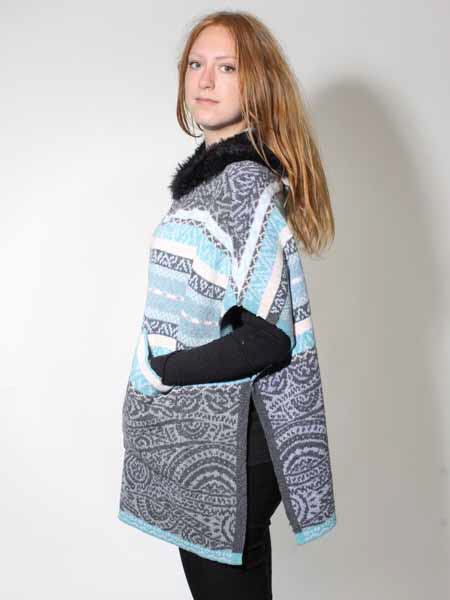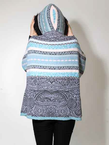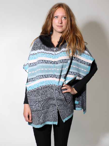 sind die Farben dieses dicken Strickcapes von Kooi. Es wird mit einem 2-Wege-Reißverschluß geschlossen, hat eine Kapuze, die mit einer Blende aus schwarzem Fransengarn geschmückt ist, schön warm am Hals. Das Cape ist gerade geschnitten, mit Schulterschrägung, hat 2 aufgesetzte Taschen. Länge ca. 76 cm. Wir haben das Cape in 2 Größen, Sie können das Cape auch tragen, wenn Sie 2-3 Größen höher brauchen, als im Etikett steht, d.h. für alle Größen möglich.