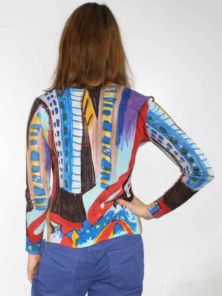 bedruckt in den Farben ist diese superleichte Sommerstrickjacke von Olivier Philips. Sie wird mit einem senkrechten Metallverschluß unsichtbar geschlossen. Länge ca. 63 cm. Sie fällt knapp aus, wählen Sie im Zweifel eine Größe höher.