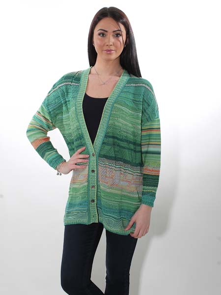 OUTLET - Ivko - Lange Strickjacke grün bunt
