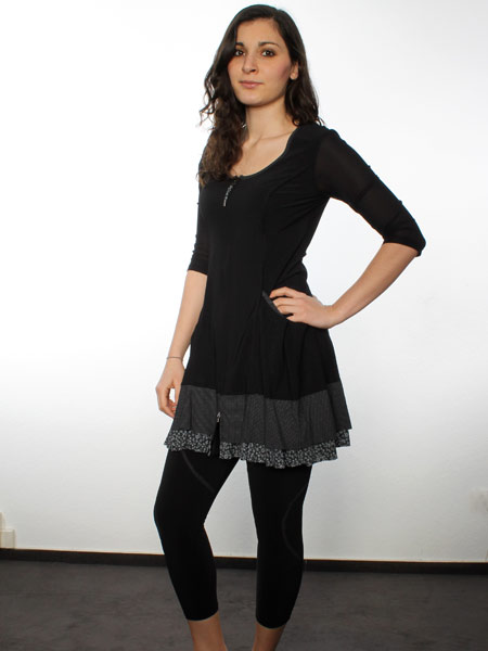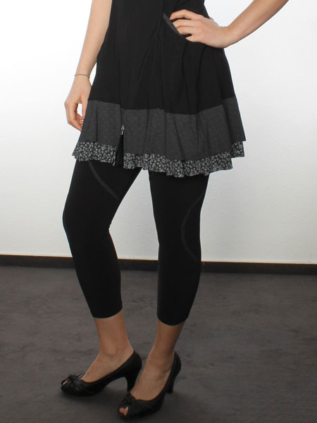 dieser Leggings von 3322 aus hochelastischem schwarzen Jersey sind betont mit schwarz/weiß gepunktetem Jersey. Sie hat in der Taillle einen bequemen Gummidurchzug. Länge der Hose ca. 83 cm. Passend zu diesen Leggings haben wir viele Tuniken im Angebot.