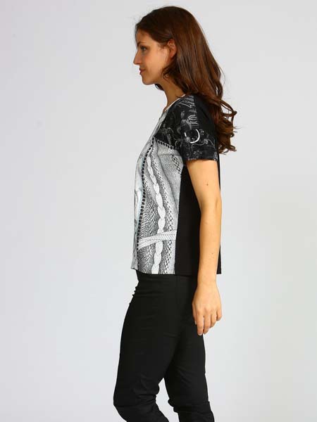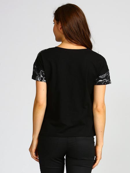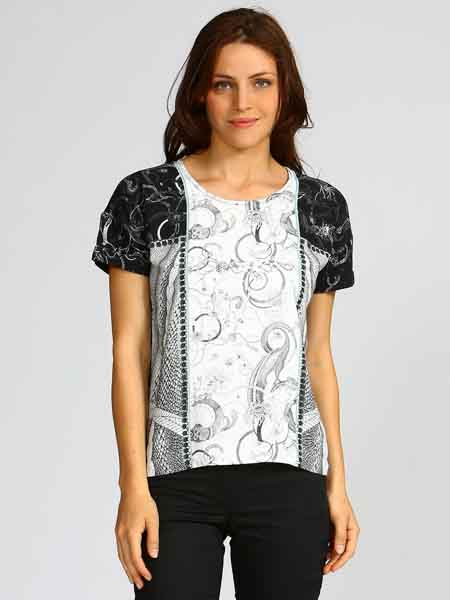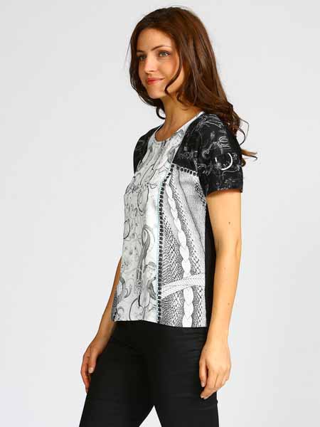 sind die Farben des Gemäldes "Volutes" von Lotie, das auf den Baumwolljersey dieses Shirts von Aventures des toiles gedruckt ist. Die Schultern sind modisch überschnitten. Länge des Shirts ca. 63 cm.
