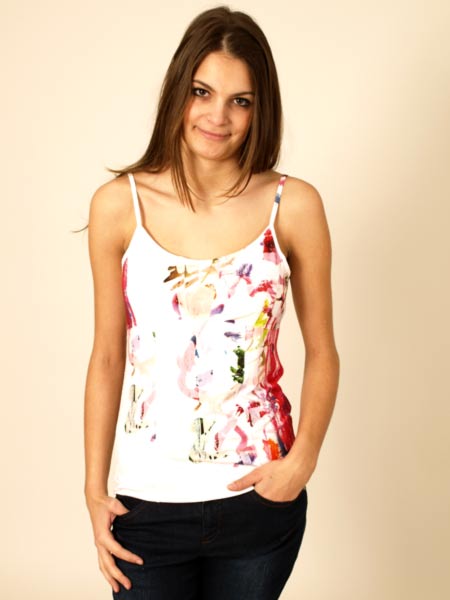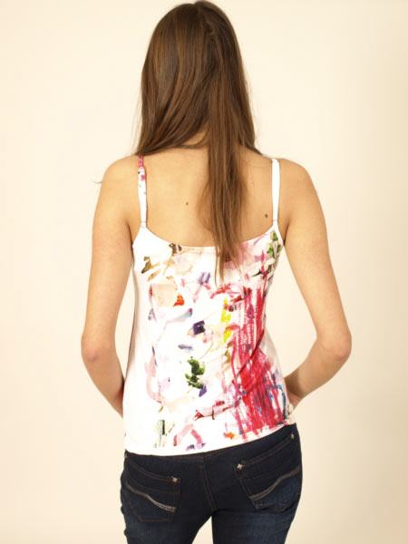 in der Länge sind die Spaghettiträger dieses Tops von Aventures des Toiles, bedruckt mit einem Motiv der Malerin Martine Mickaelian. Länge des Tops ca. 60 cm. Das Top fällt groß aus, deshalb haben wir die deutsche Größe der franz. Größe gleichgesetzt.