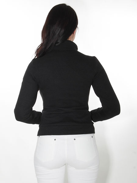 ist das Thema, zu dem diese Jacke von Dolcezza gehört, Kunst und Mode aus Kanada, wir haben sie in den Farben off white und schwarz. Sie ist gearbeitet aus einem dicken Strickstoff, die mittleren Partien an den Vorderteilen sind leicht wattiert und diagonal abgesteppt. Die Jacke hat einen Stehkragen, wird mit einem schwarzen Reißverschluß geschlossen. In den Teilungsnähten sind Reißverschlußtaschen eingearbeitet. Die Jacke ist leicht tailiert, fällt relativ knapp aus, entspricht einer Grße 36/38. Länge ca. 58 cm.