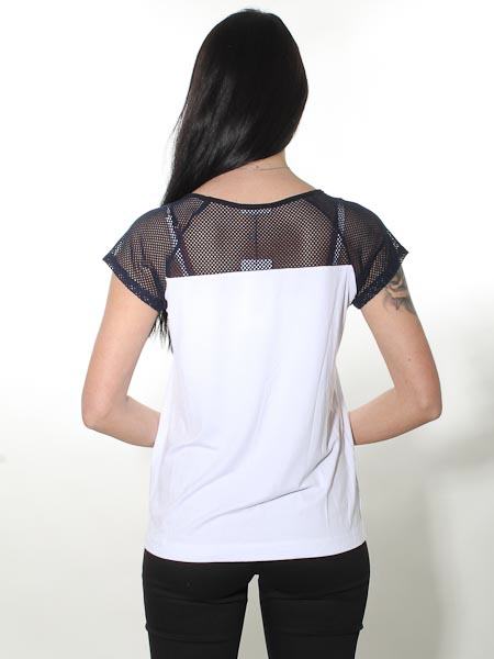 ist das Thema zu diesem Shirt von Dolcezza, Kunst und Mode aus Kanada, in den Marinefarben weiß rot dunkelblau. Das weiße Vorderteil ist bedruckt in grau, rot, dunkelblau, silber und zusätzlich geschmückt mit silbernen Mininieten. Das Shirt hat Raglannähte. Die kurzen Ärmel und die Passe am Rückenteil sind aus dunkelblauem transparentem Netzstoff. Das Shirt ist nicht tailliert, ist leicht A-förmig geschnitten, am Saum etwas weiter. Länge in Gr. S ca. 64 cm.