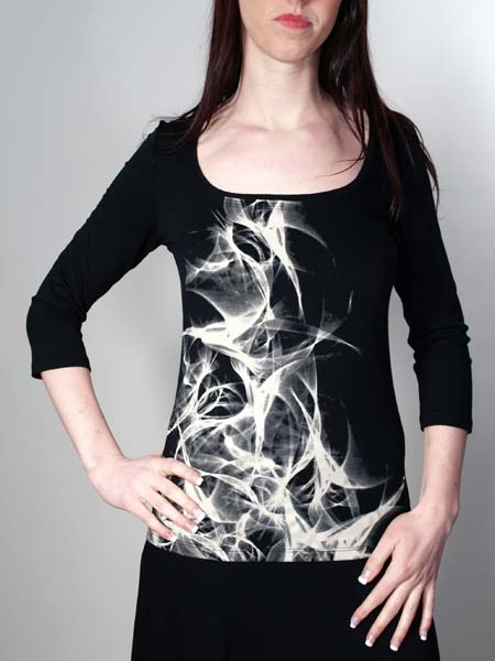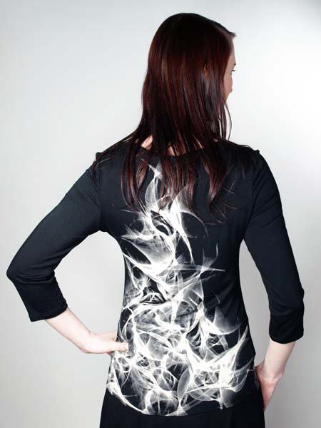 in champagner wirkt der Druck auf diesem schwarzen Shirt von Isabel de Pedro, mit tiefrundem Hals-Ausschnitt, wirkt wie immer sexy. Das Shirt ist tailliert, Länge ca. 62 cm.