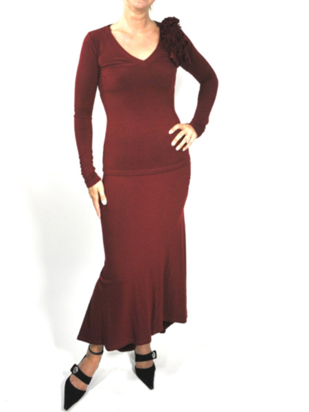 Elegant ist dieser weinrote Rock von Isabel de Pedro, hinten länger als vorne mit schwungvoller Weite hinten. Passend dazu haben wir einige elegante Shirts im Angebot, zusammen ein elegantes Kleid. Das Rock hat in der Taille einen flachen Gummi. Länge vorne ca. 86 cm, hinten ca. 102 cm.
