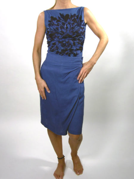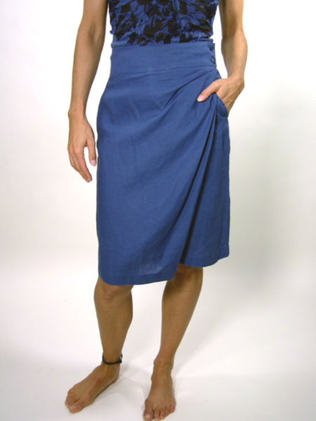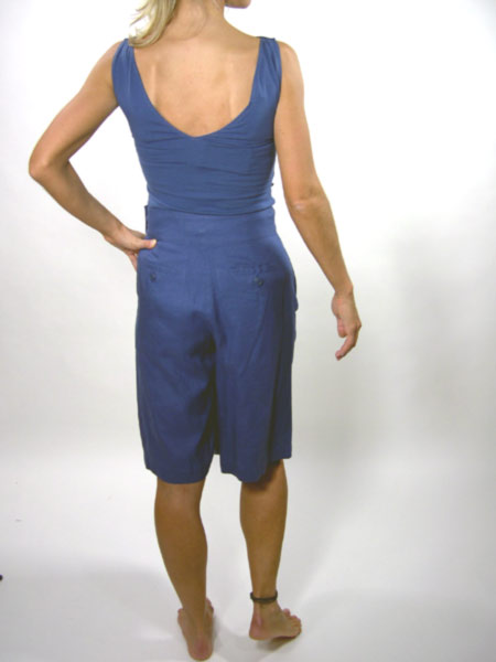 erkennt man erst den Hosenrock von Isabel de pedro, von vorne sieht er aus wie ein Rock. Er wird seitlich wie ein Wickelrock geschlossen, hat vorne und hinten je 2 Taschen. Länge des Hosenrockes ca. 66 cm.