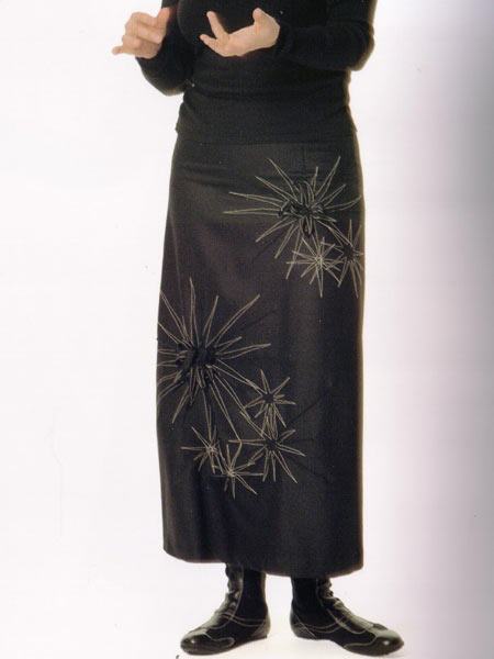 OUTLET - ISCHIKO - Langer Rock Wolle bestickt