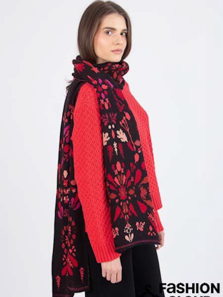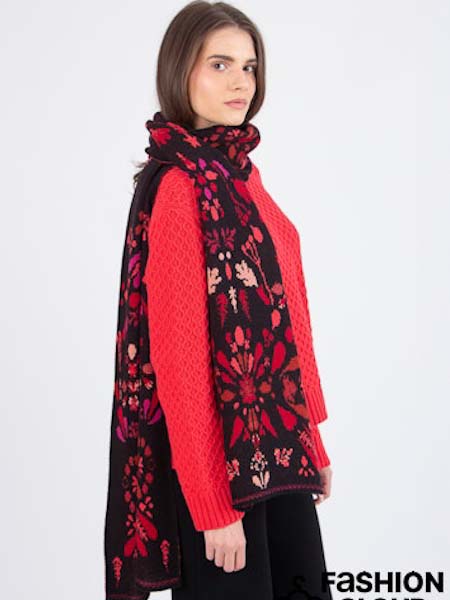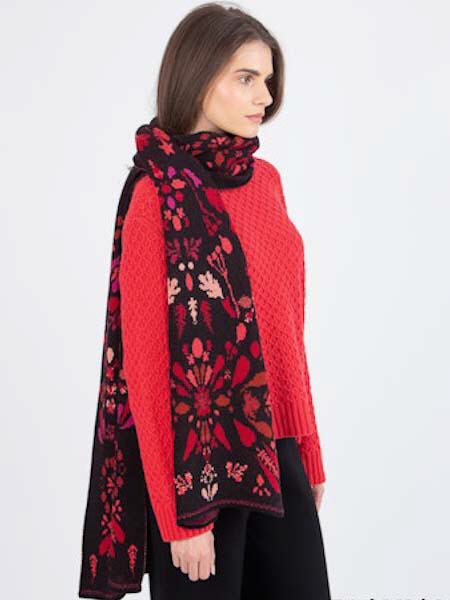 Ivko - Schal schwarzbraun mit rot Blumenmuster
