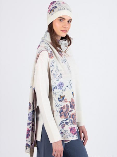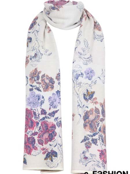 Ivko - Schal wollweiß Blumenmuster Wolle Viscose