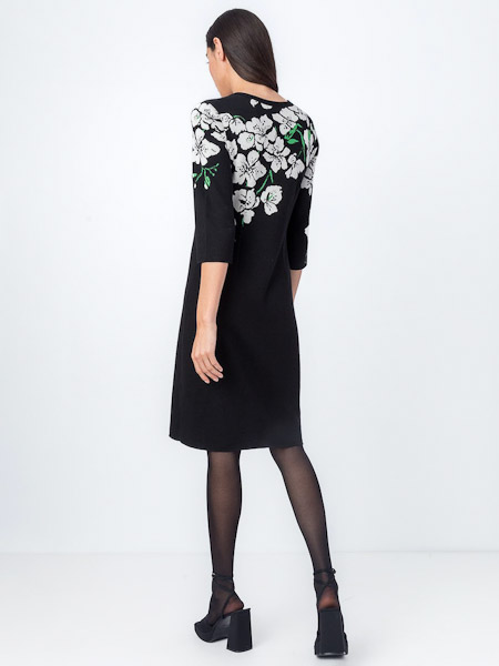 schwarz mit Blumenmuster mit Orchideen im Jacquardmuster gestrickt Intarsien
