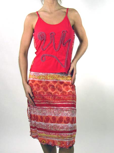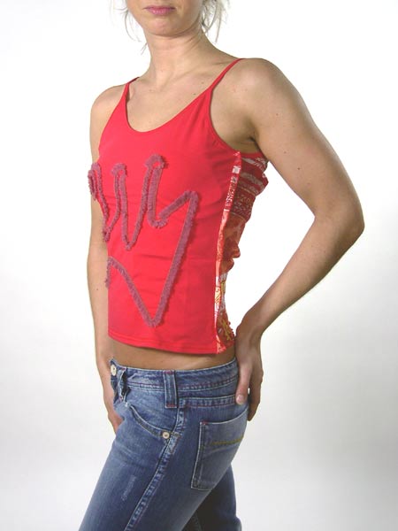 Tüllbänder sind auf das Vorderteil dieses süßen Tops von Kali Orea genäht, das Rückenteil ist aus bedrucktem, leicht transparentem Netzstoff, die Saumkanten sind gekettelt, das Vorderteil ist aus stretchigem Unistoff. Das Top fällt knapp aus, wählen Sie im Zweifel eine Größe höher. Länge ca. 52 cm.