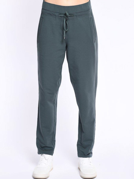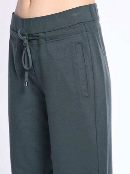 ist diese Hose von Vetono in der Farbe grafith mit einem leichten Grünstich. Sie ist aus einem dicken, leicht elastischem Jersey. Sie hat einen 4 cm breiten Taillenbund mit Gummidurchzug, flach am Bauch, mit den durgezogenen Bändern unterhalb des Taillenbundes können Sie die Taille betonen. Sie ist weit am Oberschenkel, schmaler zum Saum hin. Sie hat 2 senkrechte Patten-Taschen. Länge ca. 101 cm incl. Taillenbund in Größe 36. Innere Beinlänge ca. 74 cm.