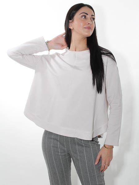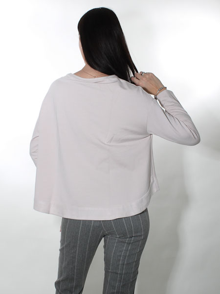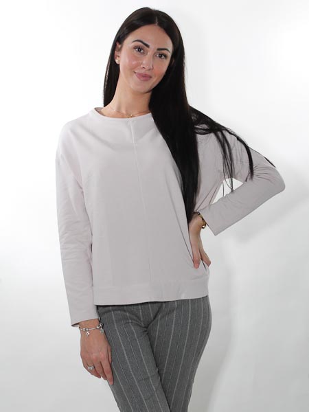 haben wir diesen lässig weiten Pulli von Simclan. Der Stoff ist unglaublich weich, fließend und angenehm auf der Haut. Der Pulli ist in A-Form geschnitten, die Schultern sind überschnitten, die langen Ärmel sind schmal. Die Saumkanten sind gerundet. Länge ca. 66 cm in Größe 38.