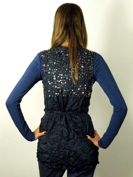 ist dieses Rippenshirt in fließender Viscose von nü by Staff. Es hat am Halsausschnitt kleine Druckknöpfe. Die überlangen Ärmel haben am Handgelenk aufgesetzte Ripsbänder. Länge des Shirts ca. 78 cm. Tragen Sie das Shirt mit breitem Hüftgürtel oder mit der farblich passenden Wickelweste.