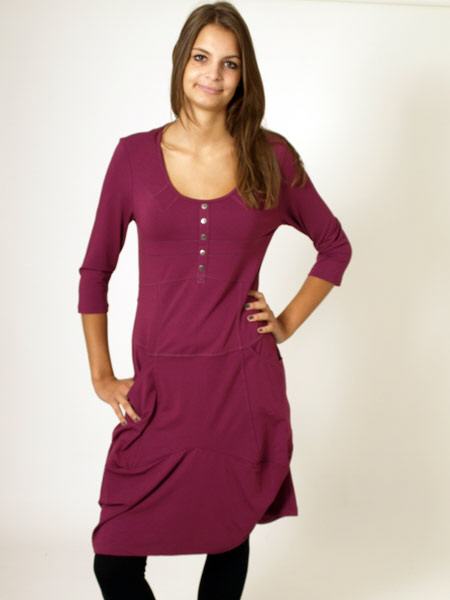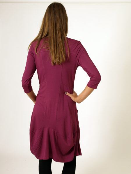 ist die Farbe dieses schicken Kleides von Yest. Es hat einen tiefen Ausschnitt, bequeme Taschen, ist am Saum leicht ballonförmig geschnitten. Die Ärmel sind 3/4 lang. Länge des Kleides ca. 109 cm an der längsten Stelle.