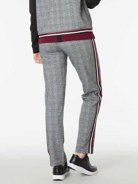 in dieser Saison. Diese schwarz weiße Hose von Yest ist aus einem dicken, elatischen Jersey im klassischen Glencheckmuster, mit breiten applizierten Jerseybändern in schwarz/weiß/dunkelrot an den Seitennähten. Die Hose hat an der Taille einen bequemen Gummidurchzug. 1/2 Beinweite am Saum in Gr. 42 ca. 20 cm. Länge der Hose incl. Bund ca. 103 cm in Gr. 42.