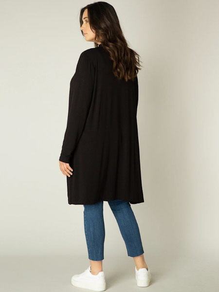 haben wir diesen leichten Strickmantel, diese Strickjacke, Jerseyjacke Yayla long von Yesta. Sie ist verschlußlos. Länge der Jacke ca. 102 cm in Gr. 38.