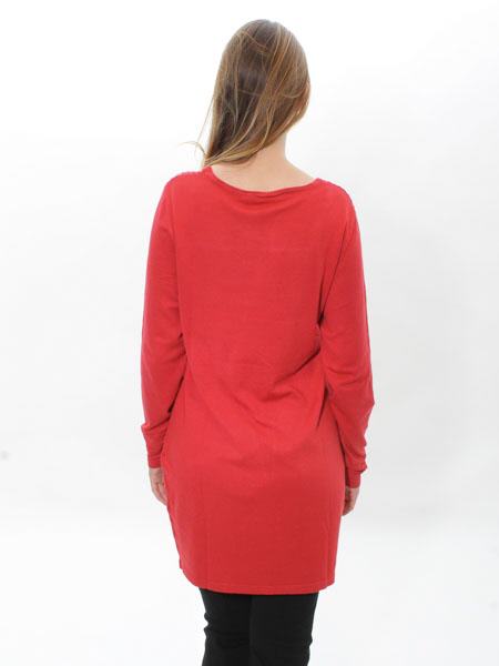 mit kleinem Lochmuster hat dieses rote Strickkleid von Yest. Es ist leicht tailliert, zum Saum hin gerade. Länge ca. 89 cm. Tragen Sie dicke Strumpfhosen darunter oder auch eine schmale Hose.