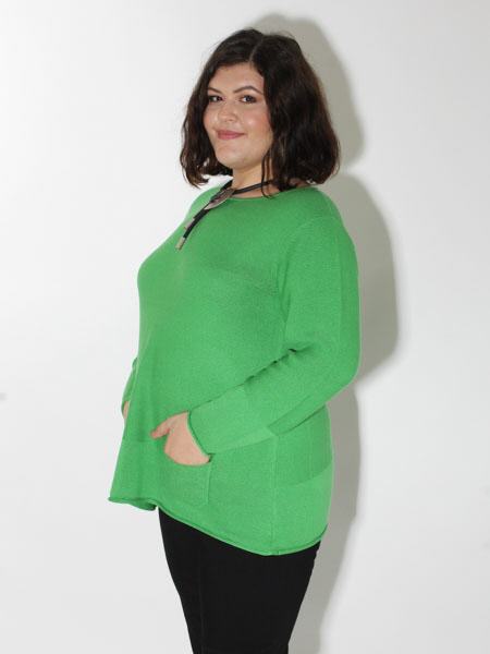 ist dieser grüne Pulli von Doris Streich, superbequem. Bringen Sie Farbe ins Leben. Der schicke Pulli hat Rollränder an den Saum- und Ärmelkanten. Lässig sind die aufgesetzten Taschen. Länge ca. 70 cm.