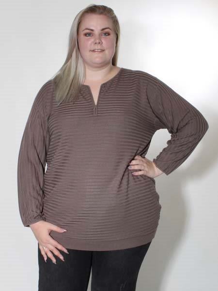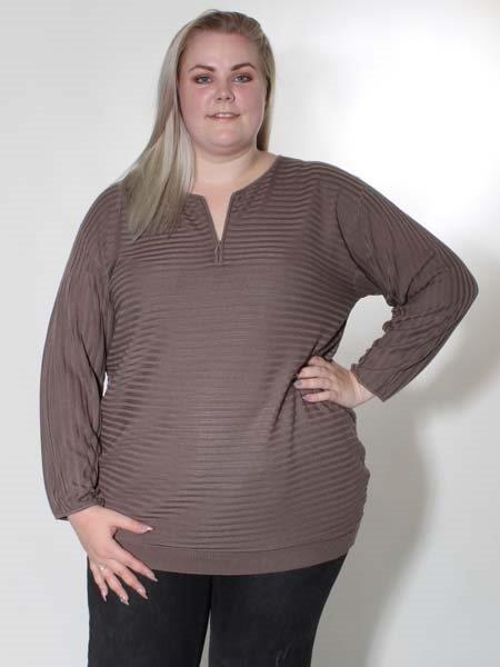 ist dieser schlammfarbene Pulli von Doris Streich, superbequem. Die Schultern sind modisch überschnitten, zum Saum hin wird der Pulli leicht ballonförmig. Am Halsausschnitt hat er einen kurzen silbernen Reißverschluß. Länge ca. 88 cm.