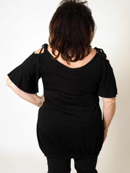hat diese Tunika von Mat, lassen Sie keck die Schulter blitzen. Der graue Druck auf dem Vorderteil ist geschmückt mit kleinen Glassteinen. Tragen Sie die Tunika über Leggings oder lange schmale Hosen. Länge der Tunika ca. 90 cm.
