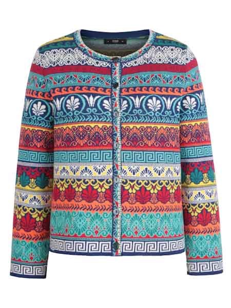 Ivko Strickjacke Mediterranes Muster ink Baumwolle