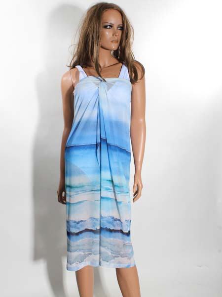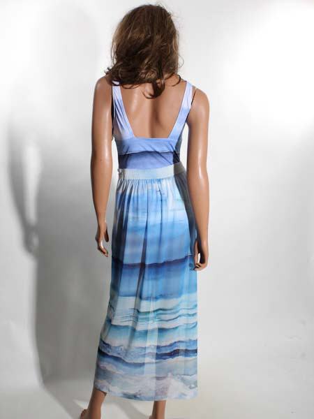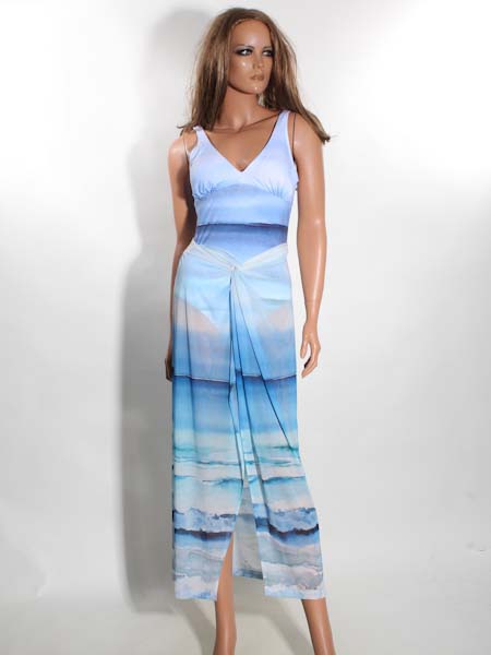 ist der Kunstmaler des Gemäldes, mit dem der leicht transparente Stoff dieses langen Strandrockes, dieses Pareos von Dolcezza bedruckt ist, Kunst und Mode aus Kanada. Dieses Modell ist ideal für den Sommer, schön auf dem Weg zum Strand. Er hat an der Taille am Rückenteil einen breiten Gummidurchzug, gut dehnbar. An der vorderen Mitte ist der Stoff wie geknotet an der Taille. Beim Laufen können Sie gut Ihre Beine zeigen. Dieser Pareo schützt vor zu viel Sonne. Länge an der Seitennaht ca. 94 cm.