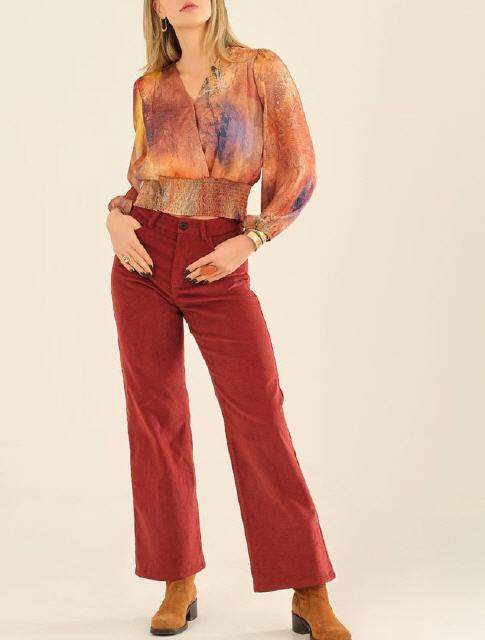Corduroy wide leg in schwarz braun und rost