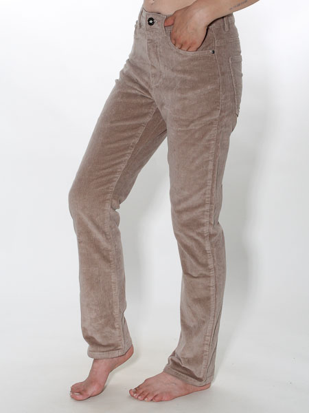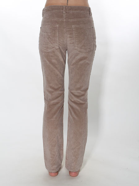 ist das Thema, zu dem diese schmal geschnittene Cordhose von Dolcezza, Kunst und Mode aus Kanada gehört. Wir haben sie in der Farbe taupe sand. Sie ist geschnitten wie eine 5-pockets-Jeans. Sie ist hinten hoch geschnitten, mit schmaler Saumweite von 18 cm. innere Beinlänge 76 cm, Länge incl. Bund in Gr. S ca. 102 cm. Der Taillenbund ist innen aus einem bedruckten Webstoff, ein Motiv von Kush Navid.