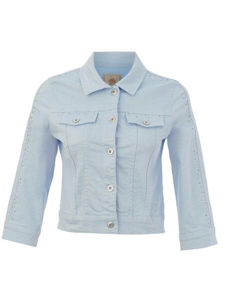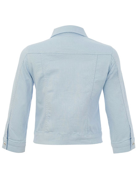 ist das Thema, zu dem diese Jeansjacke von Dolcezza gehört. Wir haben sie in den Farben koralle, weiß und in hellblau vorrätig, aus Denim gearbeitet. Sie ist im Stil einer Jeansjacke geschnitten, hat einen Kragen, wird mit Metallknöpfen geschlossen. Sie hat 2 Pattentaschen auf den Vorderteilen, betont mit kleinen Strasssteinen. Die 3/4 langen Ärmel haben Manschetten. Die senkrechte Mitte der Ärmel ist betont mit silbernen Steinchen. Die schicke Jacke ist gut tailliert, fällt sehr knapp aus. Länge in Gr. S ca. 50 cm.