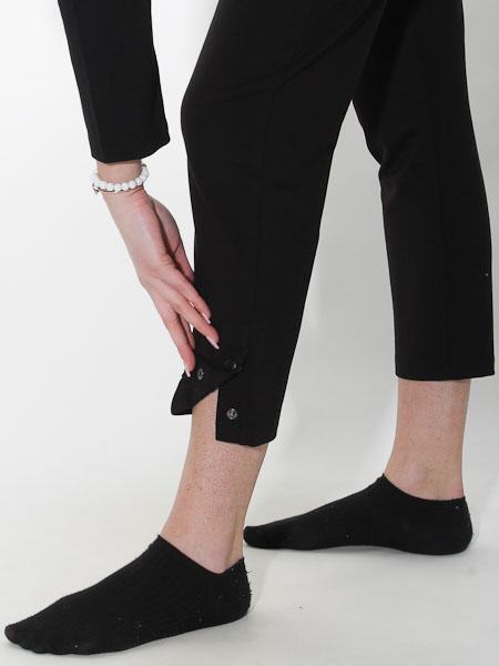 sind diese Treggings von Dolcezza gearbeitet, wir haben sie in schwarz. Bequemer geht´s nicht, lässig geschnitten. Sie hat einen breiten, flachen, doppelten Bund an der Taille/Hüfte. Die lässige Hose hat vorn 2 Eingrifftaschen und hinten 2 Po-Taschen. An der Seitennaht unten hat sie 2 Druckknöpfe. Innere Beinlänge in Gr. S ca. 71 cm, Länge aussen incl. Bund ca. 102 cm. Unser Model ist 182 cm groß.
