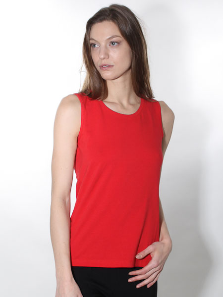 haben wir dieses ärmellose Top von Dolcezza, Kunst und Mode aus Kanada. Es ist leicht tailliert, hat einen runden Ausschnitt. Länge in Gr. S ca. 64 cm.