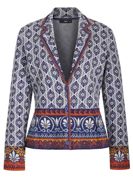 Mediterranes Muster dunkelblau weiß Strickblazer Schößchen