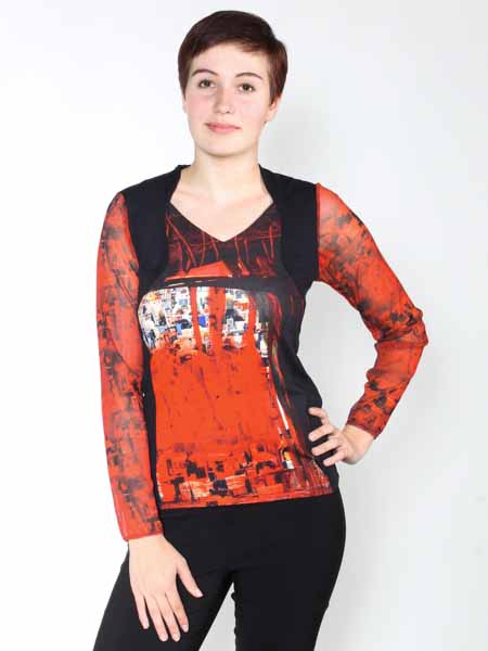 mit dem Gemälde "Urban Vibes" von Marie-Esther Maryga ist der Jersey am Vorderteil dieses Shirts von Aventures des Toiles. Die Ärmel sind aus leicht transparentem Netzstoff, ebenfalls bedruckt. Die schwarzen Partien sind aus uni elastischem Jersey. Dieses schicke Shirt zaubert eine tolle Figur. Länge des Shirts ca. 66 cm in Gr. 38, in größeren Größen länger.