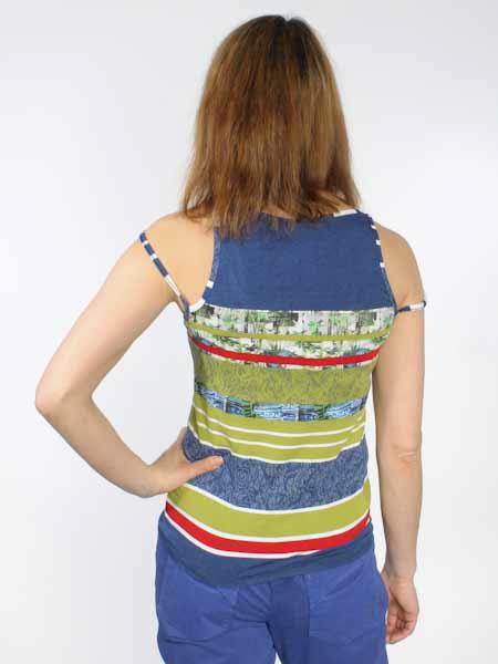 mit dem Gemälde "Ma maison" von Mathieu Cherkit ist der Jersey dieses Tops von Aventures des Toiles, kombiniert mit Spitzendruck, Streifen und uni Flächen in den Farben des Gemäldes. Länge des Tops ca. 61 cm.