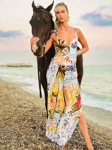 ist die Kunstmalerin des Gemäldes, mit dem der elastische Stoff dieses Badeanzugs von Dolcezza bedruckt ist, Kunst und Mode aus Kanada. Er hat wattierte Cups mit Push up Effekt. Er hat einen hohen Beinausschnitt, sehr sexy, zaubert lange Beine. Die Träger sind in der Länge verstellbar.