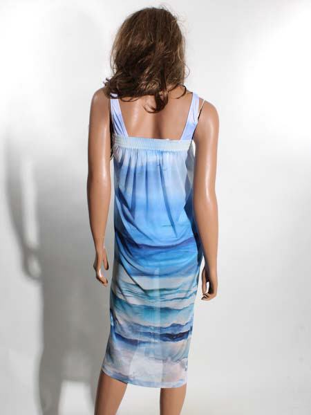 ist der Kunstmaler des Gemäldes, mit dem der leicht transparente Stoff dieses langen Strandrockes, dieses Pareos von Dolcezza bedruckt ist, Kunst und Mode aus Kanada. Dieses Modell ist ideal für den Sommer, schön auf dem Weg zum Strand. Er hat an der Taille am Rückenteil einen breiten Gummidurchzug, gut dehnbar. An der vorderen Mitte ist der Stoff wie geknotet an der Taille. Beim Laufen können Sie gut Ihre Beine zeigen. Dieser Pareo schützt vor zu viel Sonne. Länge an der Seitennaht ca. 94 cm.