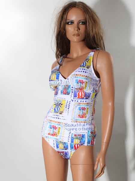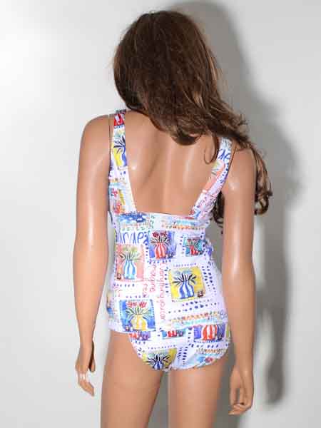 ist der Kunstmaler des Gemäldes, mit dem der elastische Stoff dieses Tankinioberteils von Dolcezza bedruckt ist, Kunst und Mode aus Kanada. Er hat leicht gefütterte Cups, Unterbrustnaht. Länge ca. 58 cm.