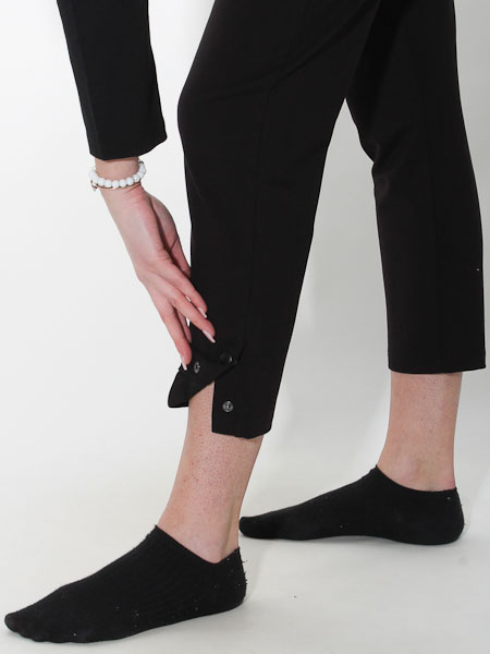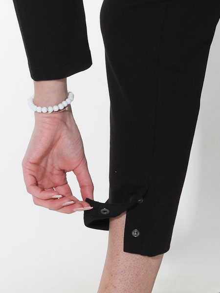 sind diese Treggings von Dolcezza gearbeitet, wir haben sie in schwarz. Bequemer geht´s nicht, lässig geschnitten. Sie hat einen breiten, flachen, doppelten Bund an der Taille/Hüfte. Die lässige Hose hat vorn 2 Eingrifftaschen und hinten 2 Po-Taschen. An der Seitennaht unten hat sie 2 Druckknöpfe. Innere Beinlänge in Gr. S ca. 71 cm, Länge aussen incl. Bund ca. 102 cm. Unser Model ist 182 cm groß.