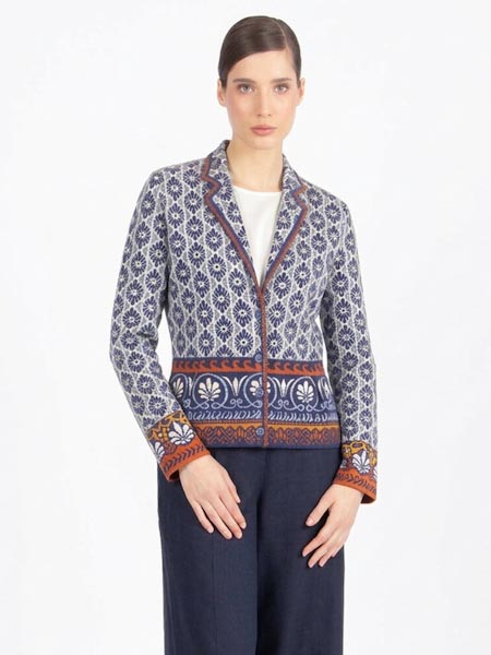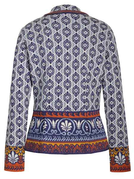 Mediterranes Muster dunkelblau weiß Strickblazer Schößchen